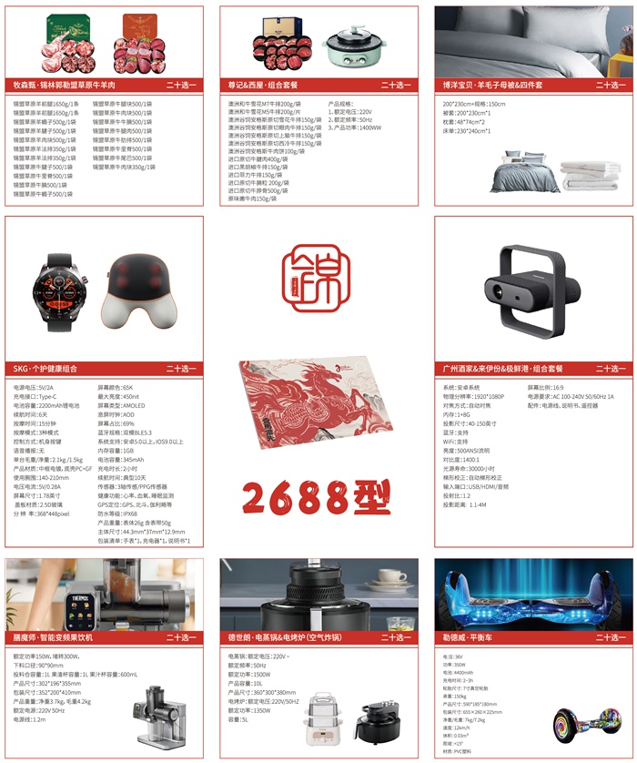 温馨提示: 1、用户凭礼册可选择里面任意一款礼品进行兑换,全国免费配送; 2、您可通过微信、电话或网上预约,我们将由专人为您送货上门; 3、礼册有效期:即日至2026年12月31;